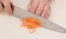 ① 鸡脯肉洗净,先片成大片,再改切成丝。胡萝卜、青菜、香菇分别洗净,均切成丝。