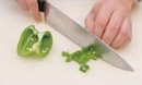 ① 香菇、酱肉、红辣椒均切小丁;青菜切段。