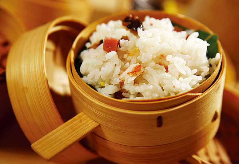 蒸饭是米饭中最为常见的一种,就是把淘洗干净的大米,加入足量的清水,再用蒸的方法加工成熟即可。蒸饭既可以直接上桌食用,也是制作其他类米饭,如炒饭、烩饭、盖饭的基础。