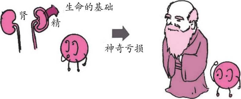 3.肾气亏损:人以五脏为本,而肾为五脏之根。肾所藏之精气为生命的基础,在人的生长壮老的过程中起主导作用。待到老年,肾精衰退,形体也逐渐衰老,全身筋骨运动不灵活,齿摇发脱,呈现出老态龙钟之象。