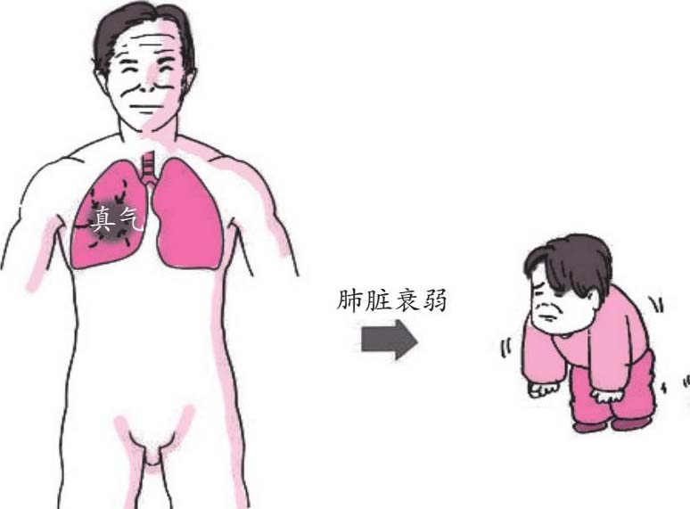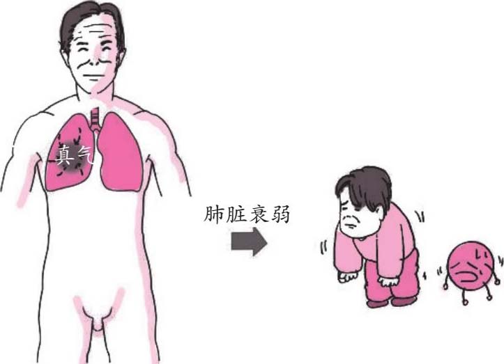 6.肺脏衰弱:肺主一身之气,人身诸气的生成、运行及功能活动,都与肺的生理活动密切相关。因此,只有肺的功能正常,人体才能维持旺盛生机不致衰退,并抵御外邪,以免因病夭折。