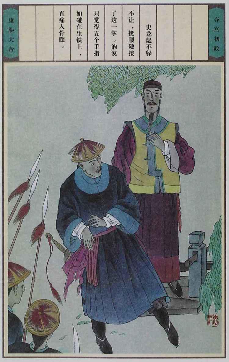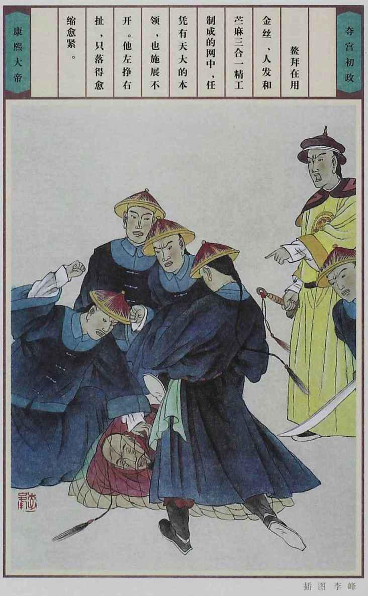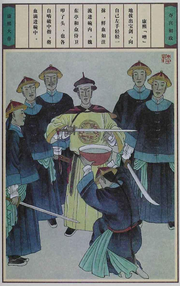 康熙自幼聪慧早熟。他一方面秘密拜落第举人、江南才子伍次友为师,勤奋学习历朝皇帝的治国经验;另一方面又以贴身侍卫魏东亭为核心,以习功练武为名,精心挑选、训练了十几名年轻力士,以待时机清除身边的最大隐患。