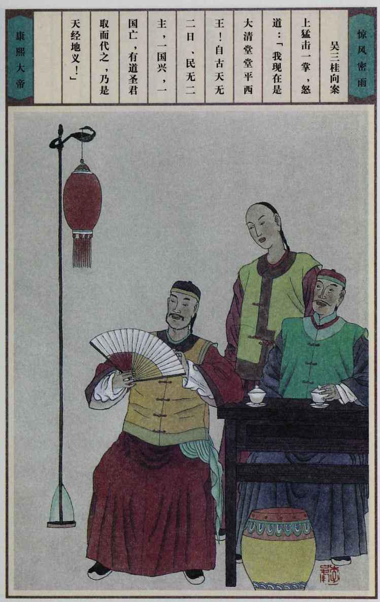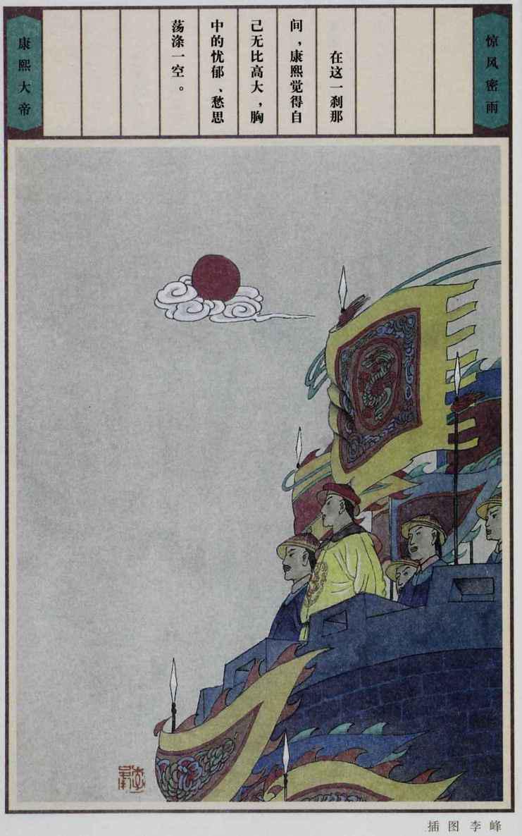 康熙真是大厦将倾而不惊,大地即陷而不慌,他多次不避艰险微服私访,察民情,诛贪官。他慧眼识珠,不拘一格启用周培公等栋梁之材。他纵横捭阖,运筹帷幄,决胜千里之外。经过数次惊心动魄的斗争,终于扫平各种反清势力,巩固了政权。年轻帝王的深谋远虑,一代英主的雄才大略,表现得相当充分。