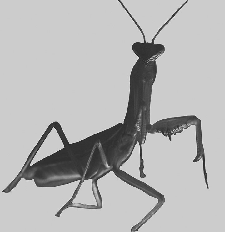 当螳螂休息的时候,会把武器折叠起来,高举在胸前,看上去一副虔诚祷告的样子。但如果有其他昆虫从它身边经过,它那祷告的姿势就一下子消失了。它立刻张开三个长长的关节,向猎物展开攻击。在猎物还没有反应过来之前,一切都结束了:任何强壮的昆虫,不管怎样用力挣扎,都会惨死在它的四排锯齿之下。
