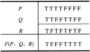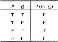 设含有n个不同的命题变元P 1 ,P 2 ,…,P n 的命题公式是G(P 1 ,P 2 ,…,P n ),对这n个变元的所有不同的真值指派,G都有相应的真值取值。称由命题变元指派真值,命题公式对应取值列成的一张表为真值表。含有n个相异命题变元的命题公式,其真值表有2 n 个指派行。