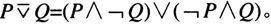取真值真当且仅当P与Q的真值取值不相同。与可兼的或∨不同的是:P与Q同取真值T时,P∨Q取值为T而