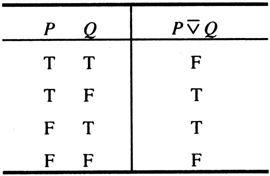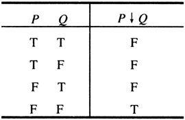 命题P与Q的或非是命题P↓Q,读作P或非Q。P↓Q取值为真,当且仅当P与Q同取值假。从真值表(见表1-13)易见:P↓Q=﹁(P∨Q)。