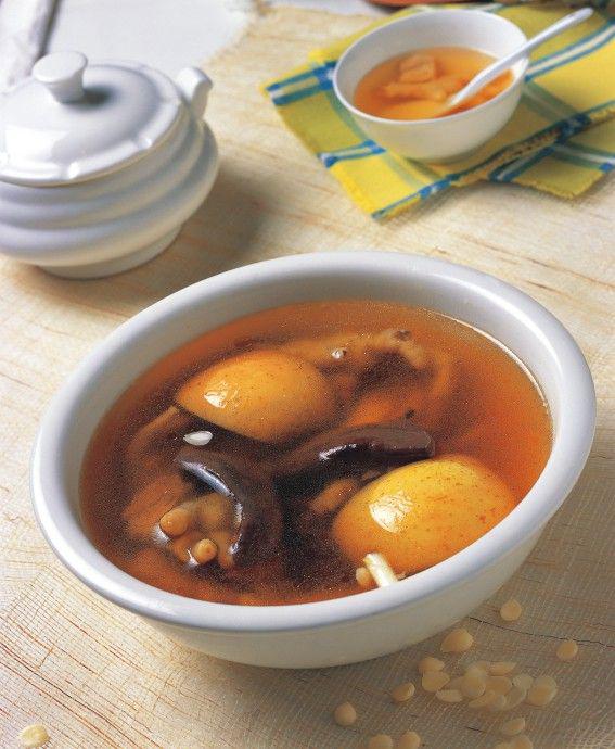 3.将猪肉块、凤爪、猪舌、生鱼块、苹果块、南杏仁、北杏仁、葱段、姜片放入炖盅内,加入清水后炖2小时,加入盐、味精后即可食用。