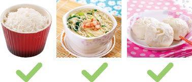主食: 白米饭、金银饭(小米大米按1∶3比例做成的饭)或小花卷。
