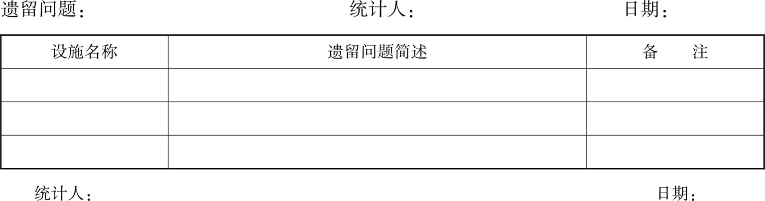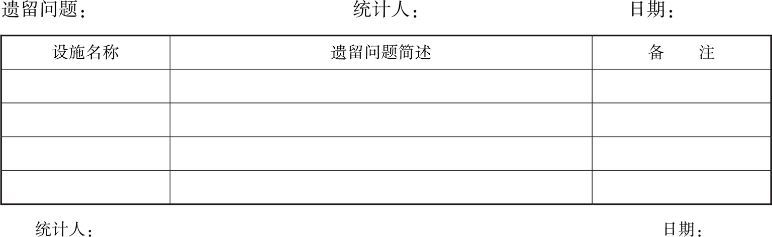 (5)机电设备接管验收遗留问题统计表(表5)。