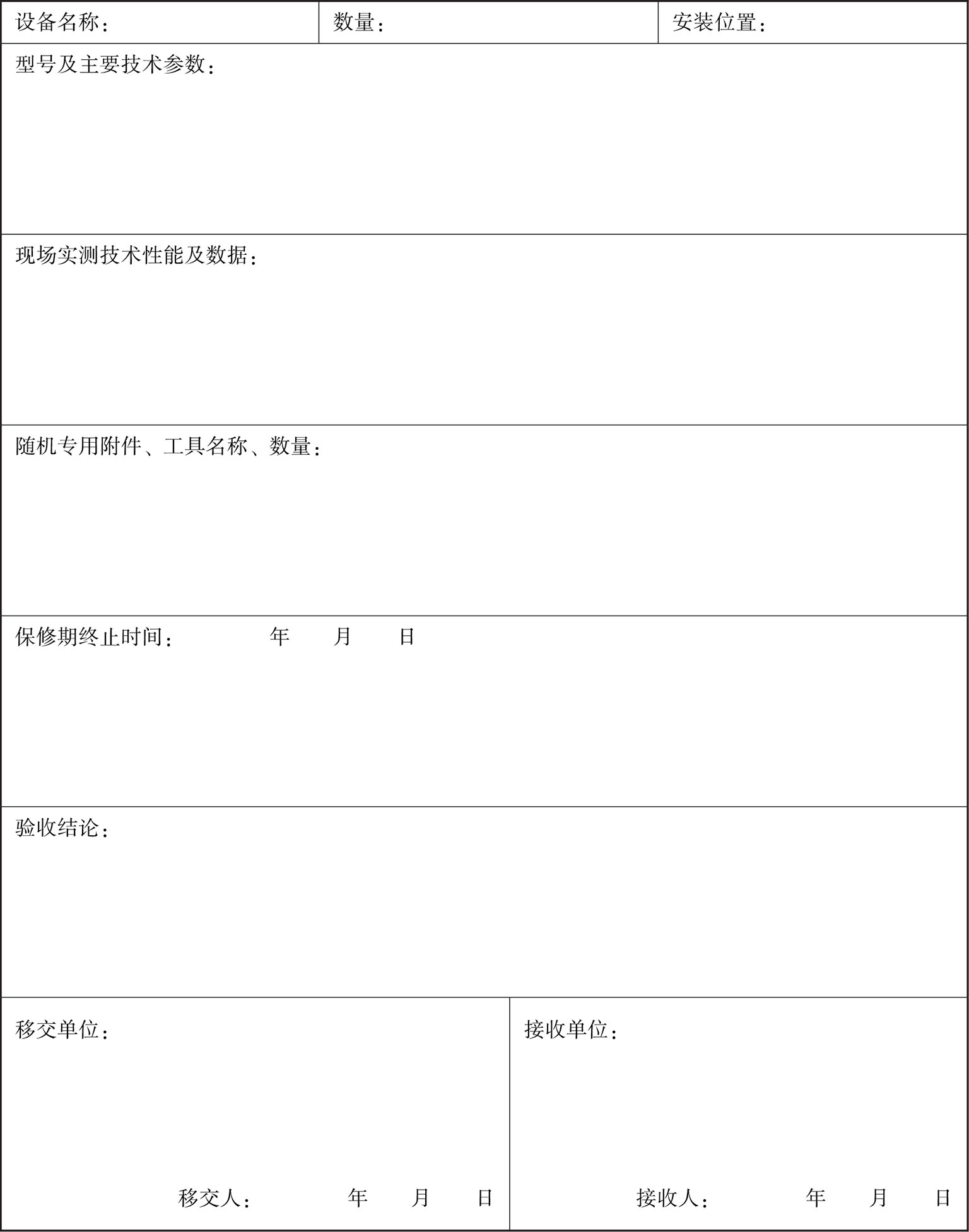 表6 机电设备接管验收表