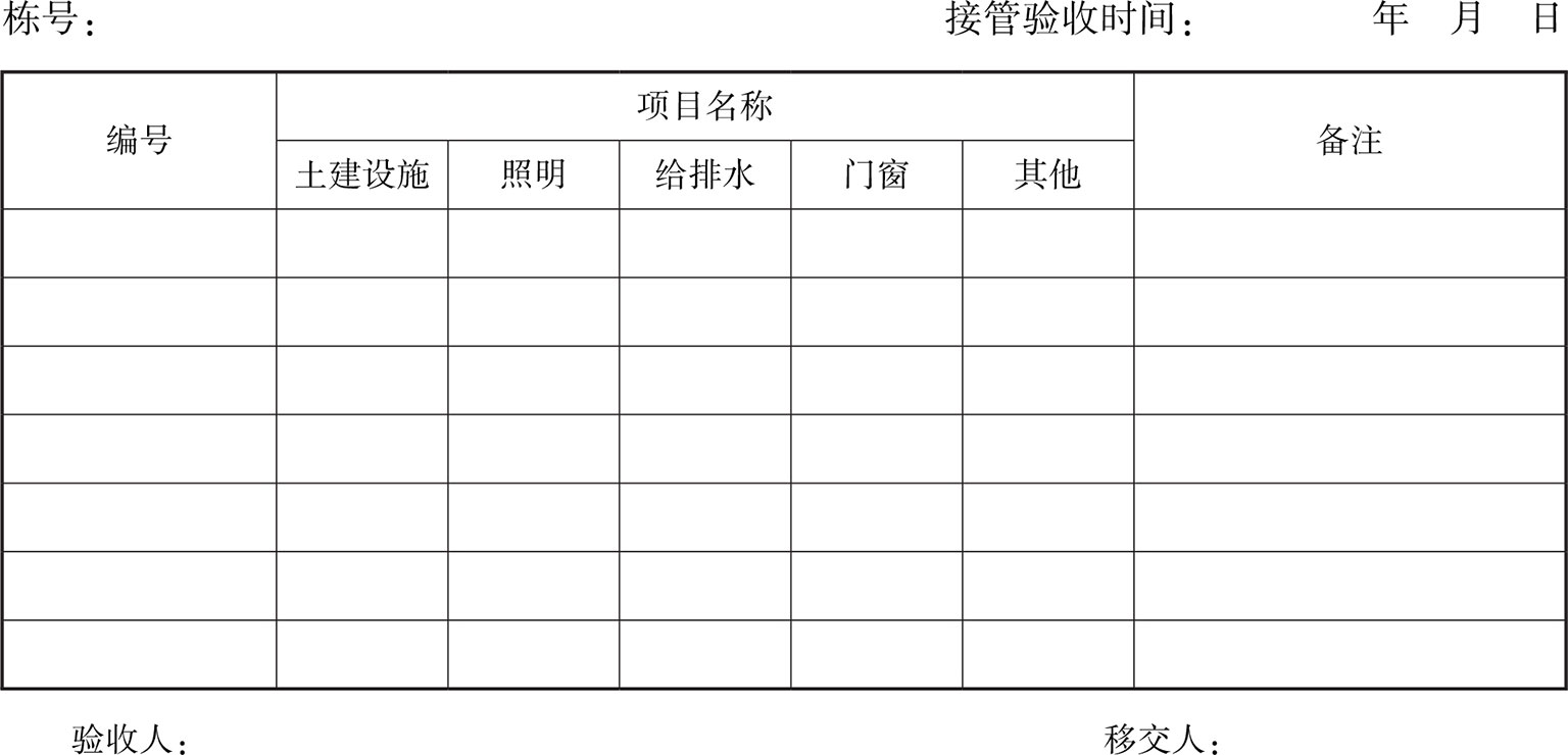 表1 房屋接管验收表
