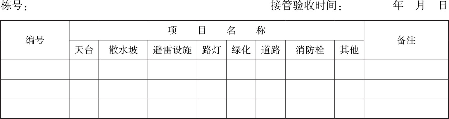 (3)公共配套设施接管验收表(表3)。