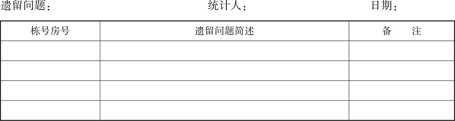 (2)房屋接管验收遗留问题统计表(表2)。