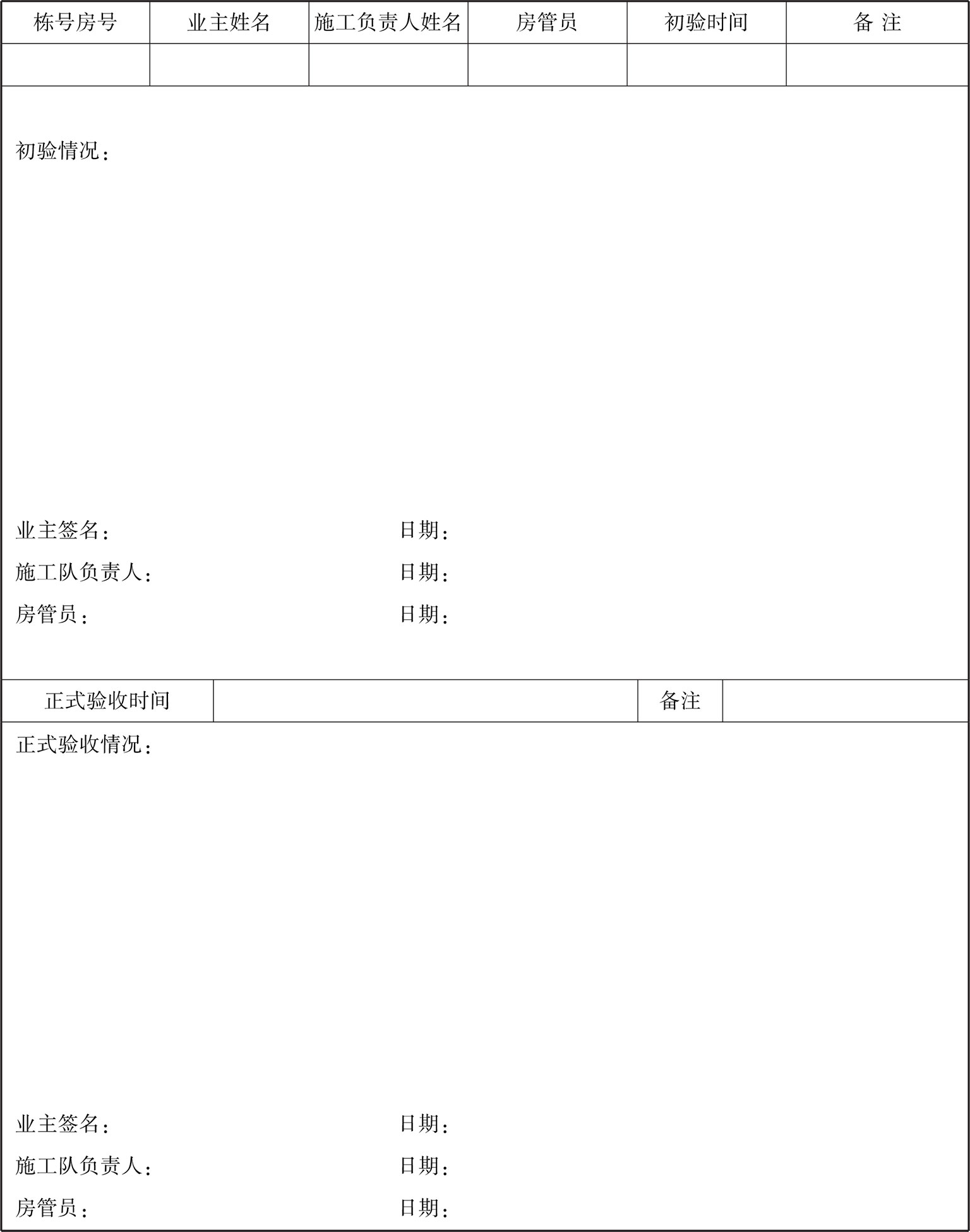 (2)正式验收不能由责任区房管员负责,应以对调责任区房管员的方式验收。