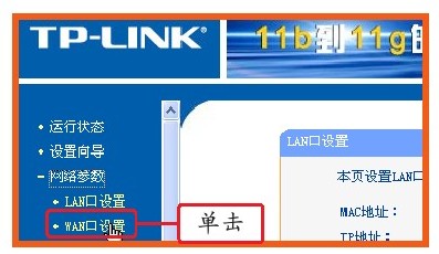 进入路由器的设置界面,单击“网络参数”列表下的“WAN口设置”链接。