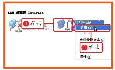 弹出“网络连接”窗口,右击“无线网络连接”图标,在弹出的快捷菜单中单击“启用”命令。
