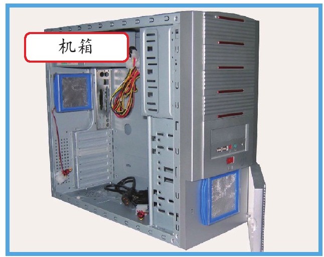 机箱的作用是放置并固定机箱内的硬件设备(电源、主板、光驱等),起保护的作用;除此之外,它还具有屏蔽电磁辐射的重要作用。