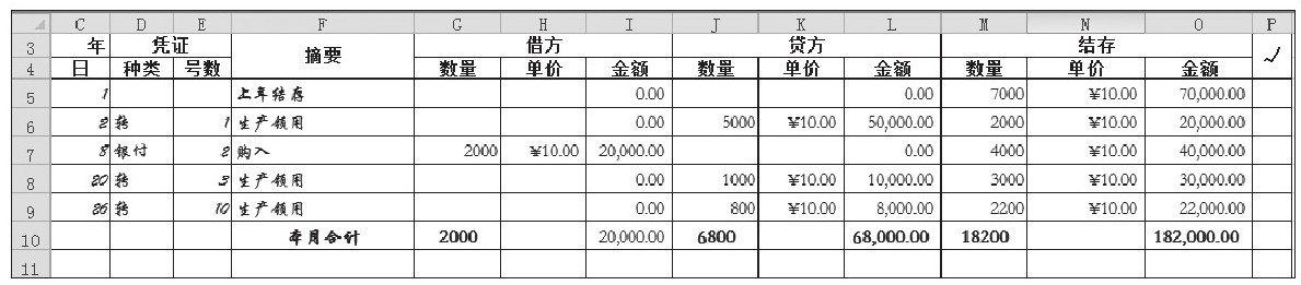 最终文件:实例文件\第3章\最终文件\原材料明细账.xlsx