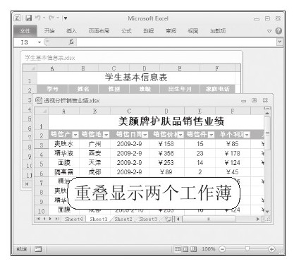 STEP 03:打开第二个工作簿。此时,用户可以打开第二个工作簿,并同样将其窗口进行还原,此时在一个窗口中同时显示了两个工作簿,如下左图所示。