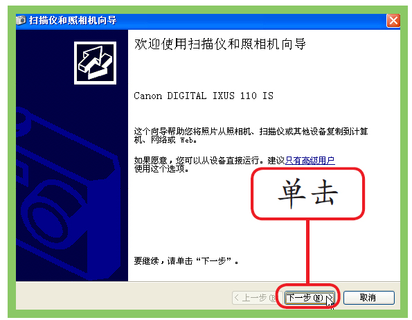 在打开的“扫描仪和照相机向导”对话框中,单击“下一步”按钮进行安装。安装完成后,将数码相机中保存照片的文件夹打开,就可看到该相机中的所有照片了。