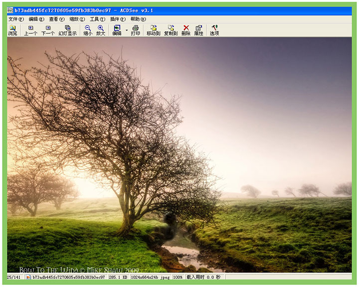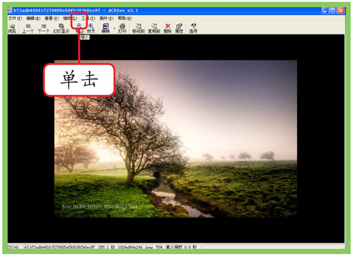 在弹出的ACDSee图像窗口中即显示了所选的照片,并以该照片的实际尺寸大小显示。