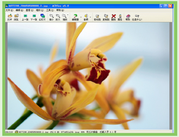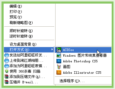 想要将自己拍摄的数码照片设置为桌面墙纸,可以右击需要设置的照片,在弹出的快捷菜单中执行“打开方式”命令,然后在打开的子菜单中单击ACDSee选项,如下图所示。将照片在ACDSee窗口中打开,如下下图所示。