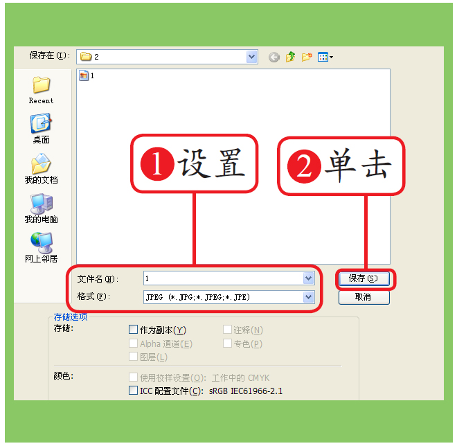 执行“文件>存储为”菜单命令,在打开的“存储为”对话框中设置文件的存储格式和名称,设置完成后单击“保存”按钮,就可将文件保存。