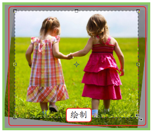 使用“裁剪工具”在图像中拖曳以后,就会显示出裁剪区域,在边框的四角会显示小矩形锚点,拖动这些锚点,就可随意地调整裁剪区域。使用鼠标在框内进行拖动,可调整边框位置,边框内的图像就是要保留的部分,而边框外面变暗的图像就是要被裁剪删除的部分。