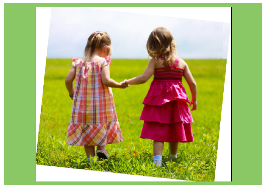 确认设置后,照片就沿顺时针方向旋转了6度,画布上空出的区域以白色背景进行了填充。