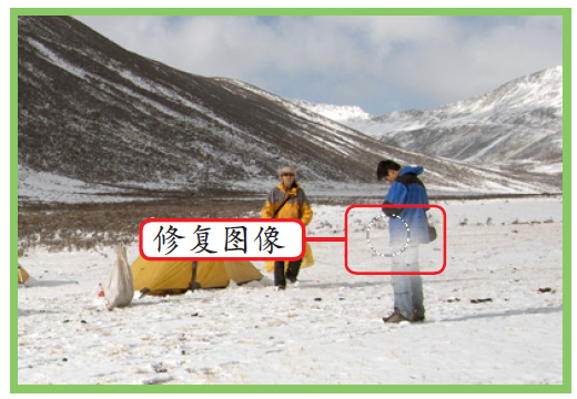 除了可以使用“仿制图章工具”对图像中的杂物进行清除外,还可以利用“修补工具”将需要修复的区域创建为选区,并将其移至周围干净的图像上,也可达到将多余图像去除的目的。