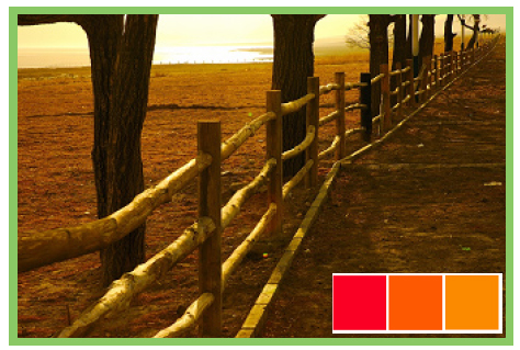 暖色调由橙色、红色、黄色、橙黄色等偏暖的色彩构成。暖色调搭配给人以温暖、热烈、充满激情、欢快等感觉,可用暖色调表现室内居家装饰、人像、食物、风光等。