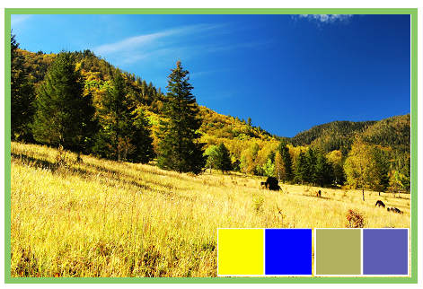 如果两种色光相加得到白色光,则这两种色彩互为补色,例如黄色与蓝色、绿色与品红色等。互补色搭配是对比色调中对比非常强烈的搭配方式,给人以明快、有力的感觉。