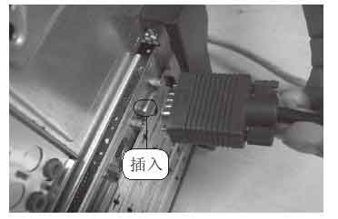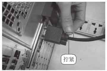 STEP 04:固定VGA数据线。插好显示器信号线以后,拧紧VGA插头上的固定螺丝,固定VGA数据线,防止VGA数据线因意外而脱落,如下右图所示。