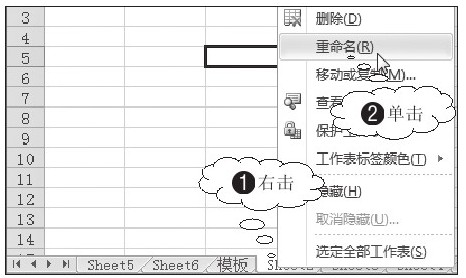 如果工作簿中包含了多张工作表,可以通过重命名工作表,使工作表更直观地显示工作表中的数据内容,同时方便以后查找数据和管理工作表。重命名工作表有3种方式,一是双击工作表标签进行重命名,它是最简单、常用的重命名工作表方式;二是通过快捷菜单命令;三是通过功能区命令。这里简单介绍使用快捷菜单命令重命名工作表的具体操作。