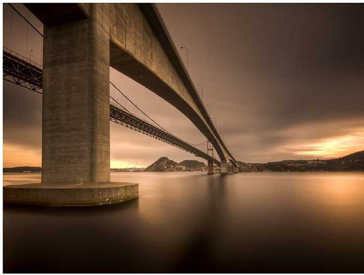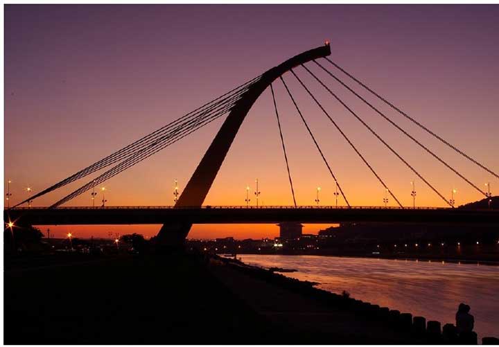 借助日落后的光线,将大桥拍摄成为剪影效果,使得建筑的轮廓更加突出。
