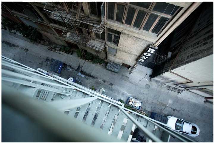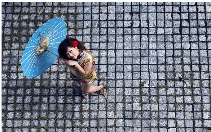 几乎与地面垂直的角度,配合两侧的建筑构成极大的景深,给人极强烈的视觉冲击力。
