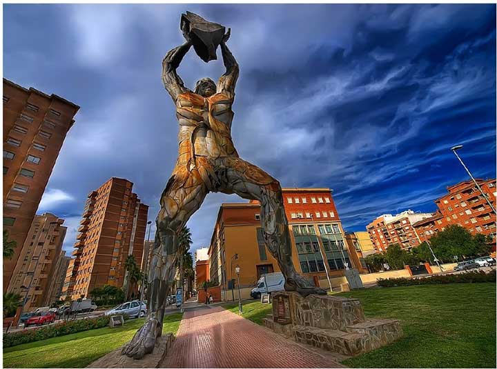 独特造型的建筑充满于画面,同时还利用周围的空白区域交代了其所处的环境。