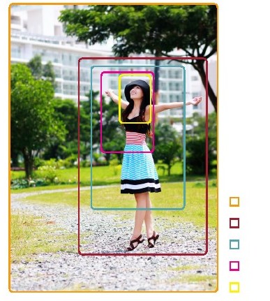 拍摄距离的变化是影响画面构图的另一种手段,从远及近可以分为5种不同的景别,即远景、全景、中景、近景、特写。