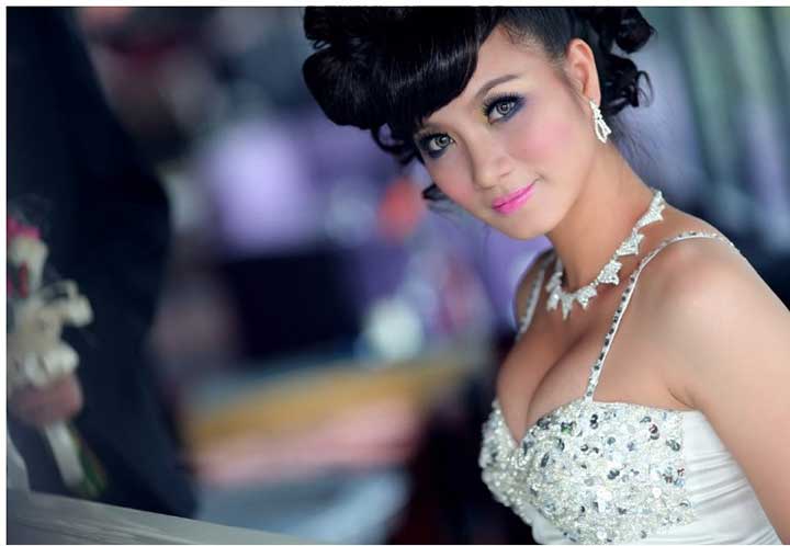 通过近景拍摄,充分体现了新娘雍容、大方的气质。
