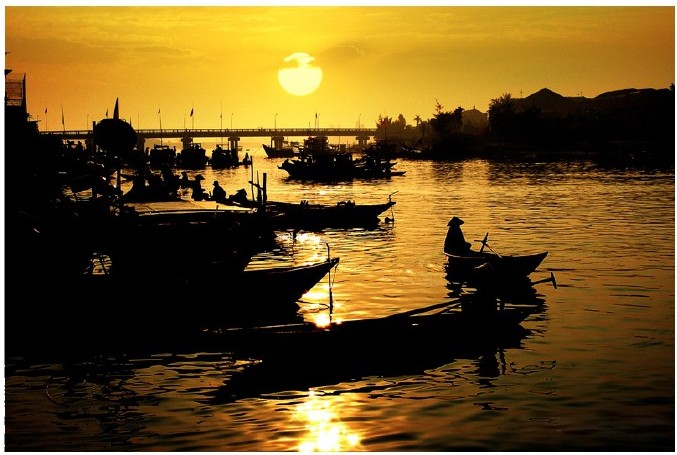 这幅照片以夕阳作为背景,逆光将画面中的景物全部变为剪影,形成非常清晰的轮廓。