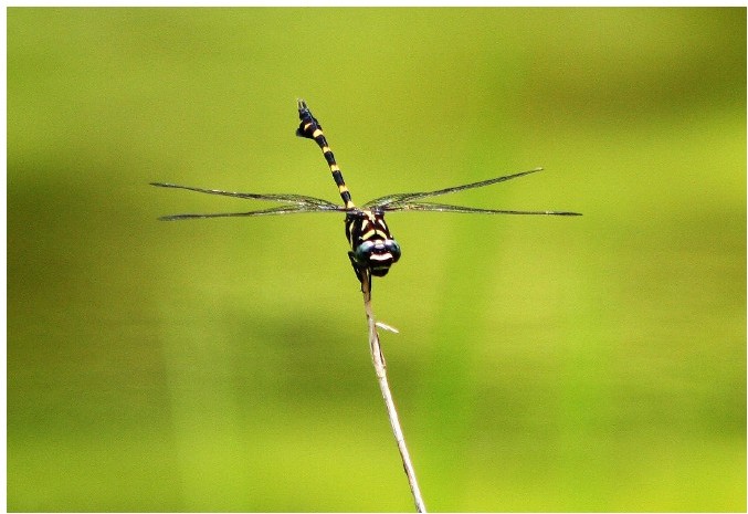 这幅作品通过长焦加大光圈的方法对背景进行虚化,从而突出画面中的主体——蜻蜓图像。