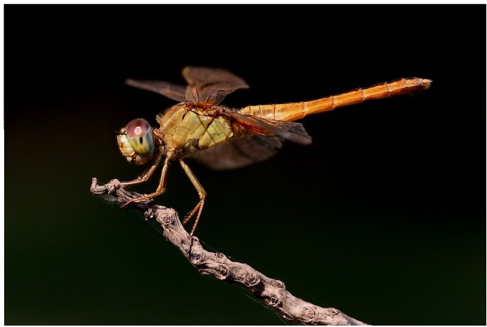 黑色背景突出了相对较亮的主体——蜻蜓。