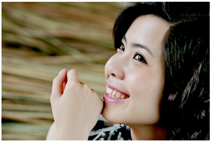 通过人物与背景之间的虚实对比,不但让人物成为画面的主体,同时由于有非常优秀的虚化效果,因此背景还具有了一定的装饰性,在这幅照片中,淡黄色的背景给人一种优雅的感受。