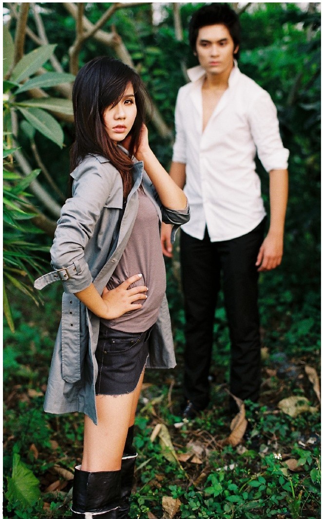 画面以女模特作为主体,而男模特则作为陪体出现,为使二者有较好的层次,通过使用大光圈将男模特进行了一定的虚化,既突出了主体,同时陪体也清晰地表现出来。