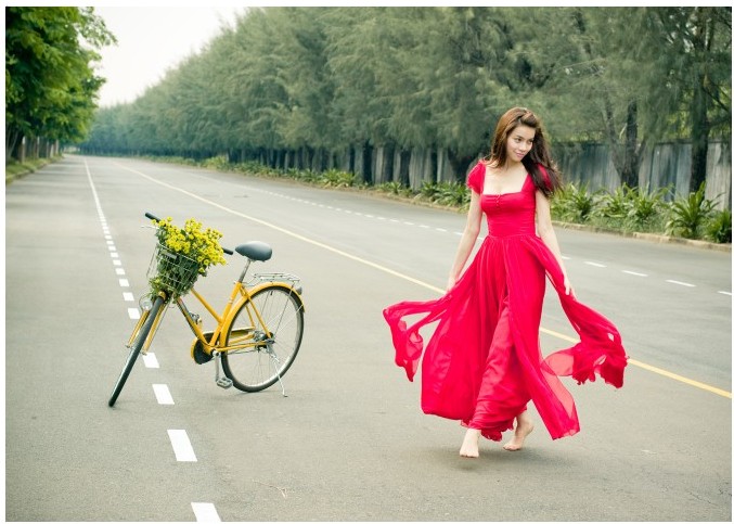 画面以人物作为主体,路旁的自行车作为画面中的点缀,使其更具有现场感。