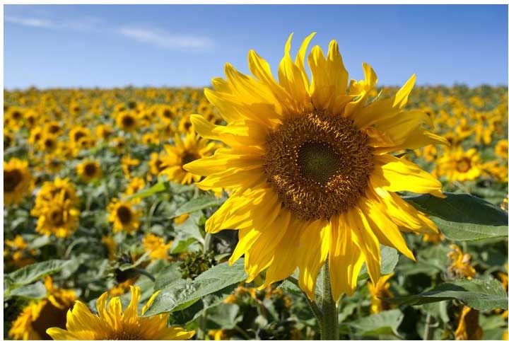 通过透视关系,作为主体的向日葵花朵与作为陪体的其他花朵形成大小对比,从而突出了主体。