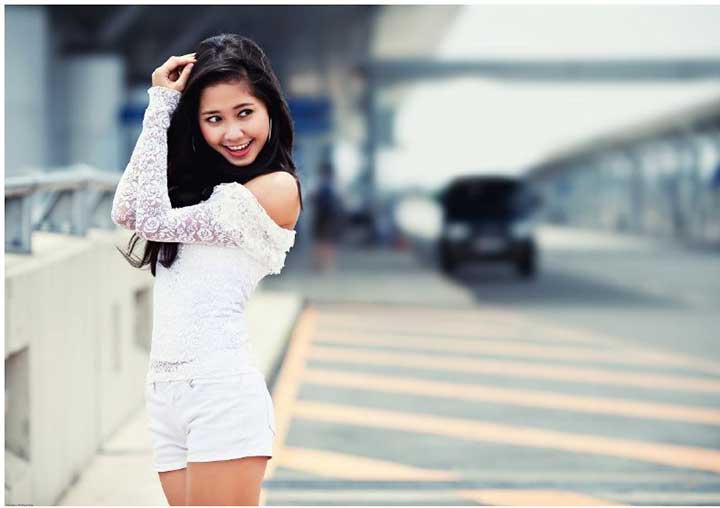 摄影师充分利用了模特的表情和动作,给人非常活泼、开朗的美好视觉感受,被虚化掉的背景,很好地突出了前景中的人物。