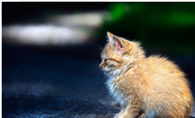 画面以非常简洁的构图,将背景完全虚化掉,从而强烈突出了画面中可爱的小猫咪。