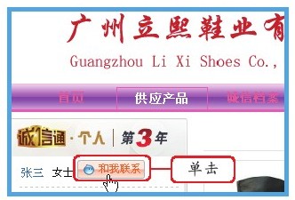 进入商品页面,在界面的左侧可以看到该商家的名称,单击右侧的“和我联系”按钮。